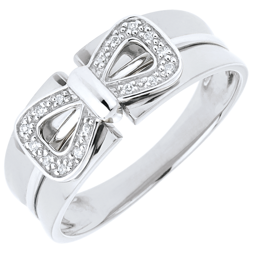 Gorset z białego złota przewiązany węzłem z białego złota i diamentów.