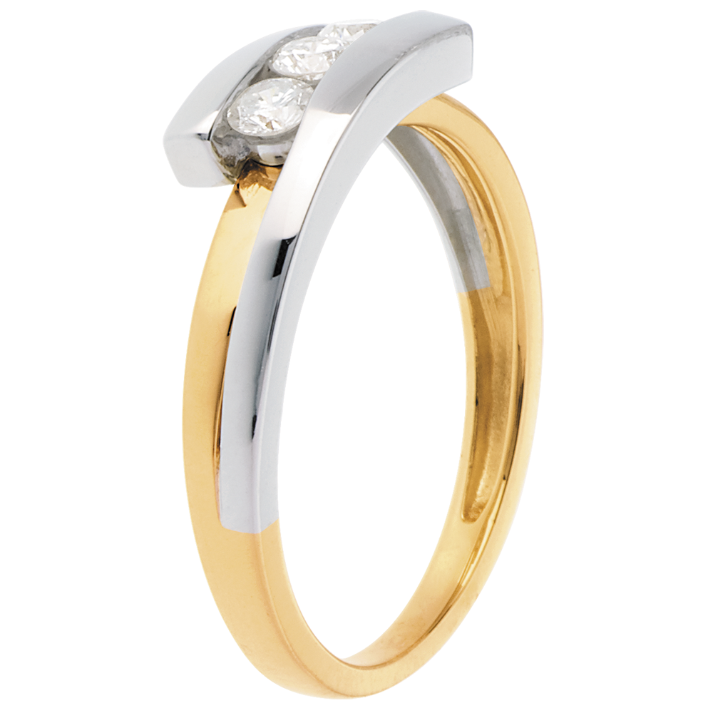 Delikatnie podkreśla trilogię trzech diamentów o łącznej masie 0,28 karata, jakości HSI.