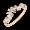 Romantyczny pierścionek wysadzany 7 diamentami, wykonany naprzemiennie z błyszczących liści z białego złota i z liści ze złota szczotkowanego ręcznie.