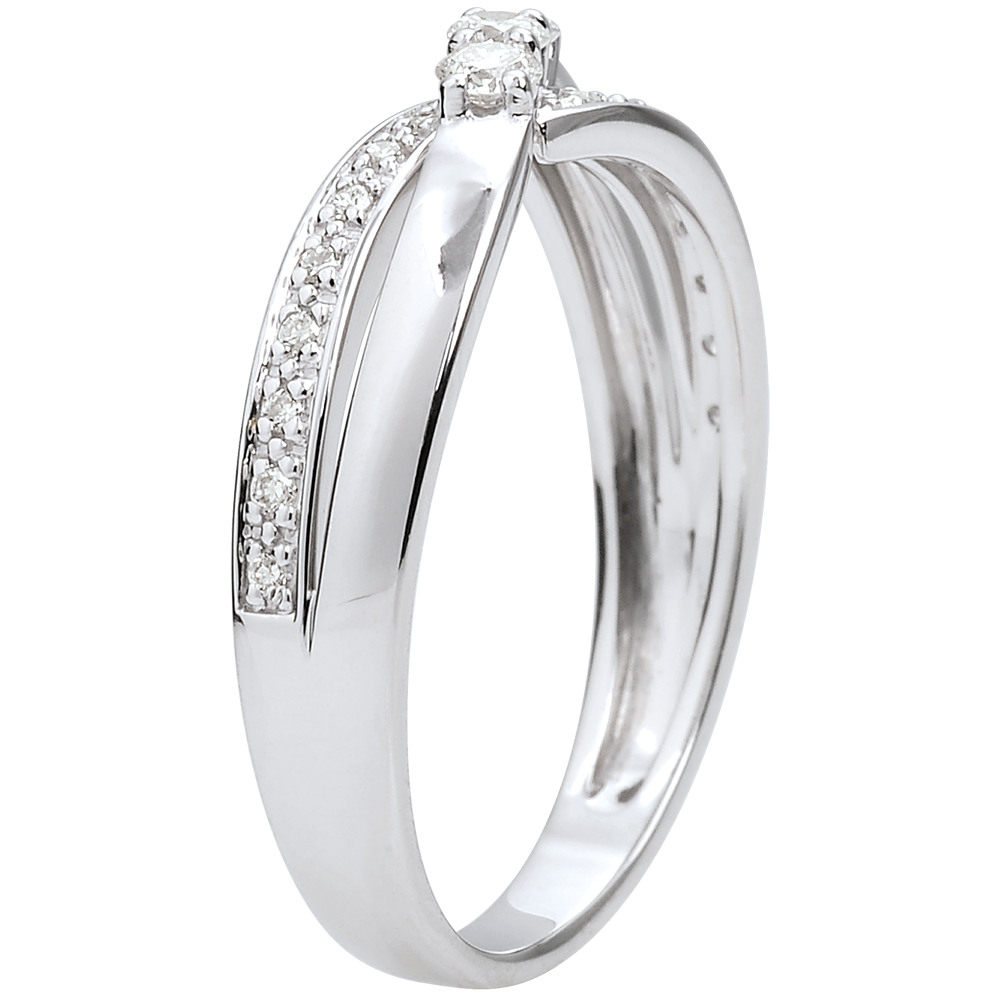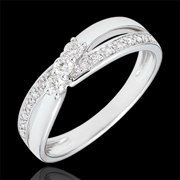 Pierścionek zaręczynowy Drogocenne Gniazdo z trzema diamentami - Aurea - złoto białe 9-karatowe - 0,18 karata