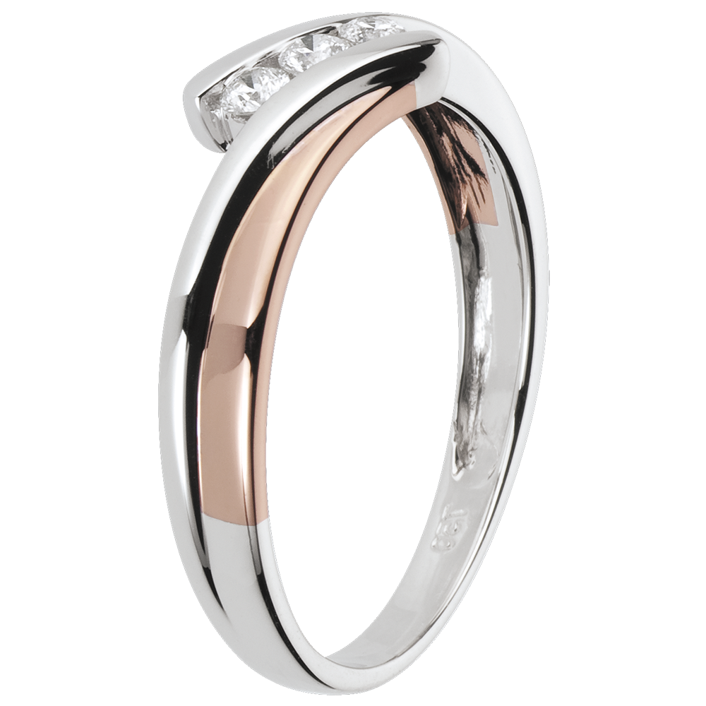 Pierścionek zaręczynowy Drogocenne Gniazdo - Trzy diamenty - 3 diamenty - złoto białe i złoto różowe 18-karatowe