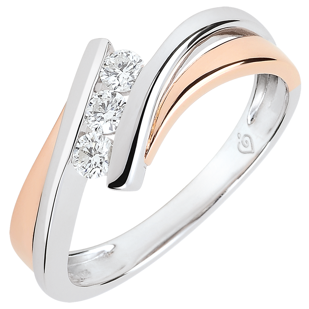 Pierścionek zaręczynowy Drogocenne Gniazdo - Trzy diamenty – duży model - różowe złoto i białe złoto 18-karatowe