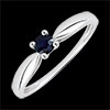 Delikatna obrączka w kształcie ukośnie ściętej łodygi zwieńczona szafirem w sześciu krapach.