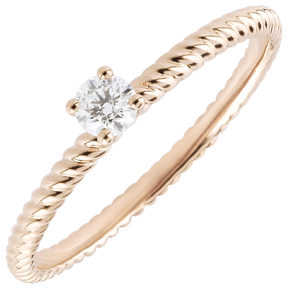 Pojedynczy diament w czterech krapach przymocowany do kunsztownej złotej liny. Oryginalny i ponadczasowy pierścionek zaręczynowy.