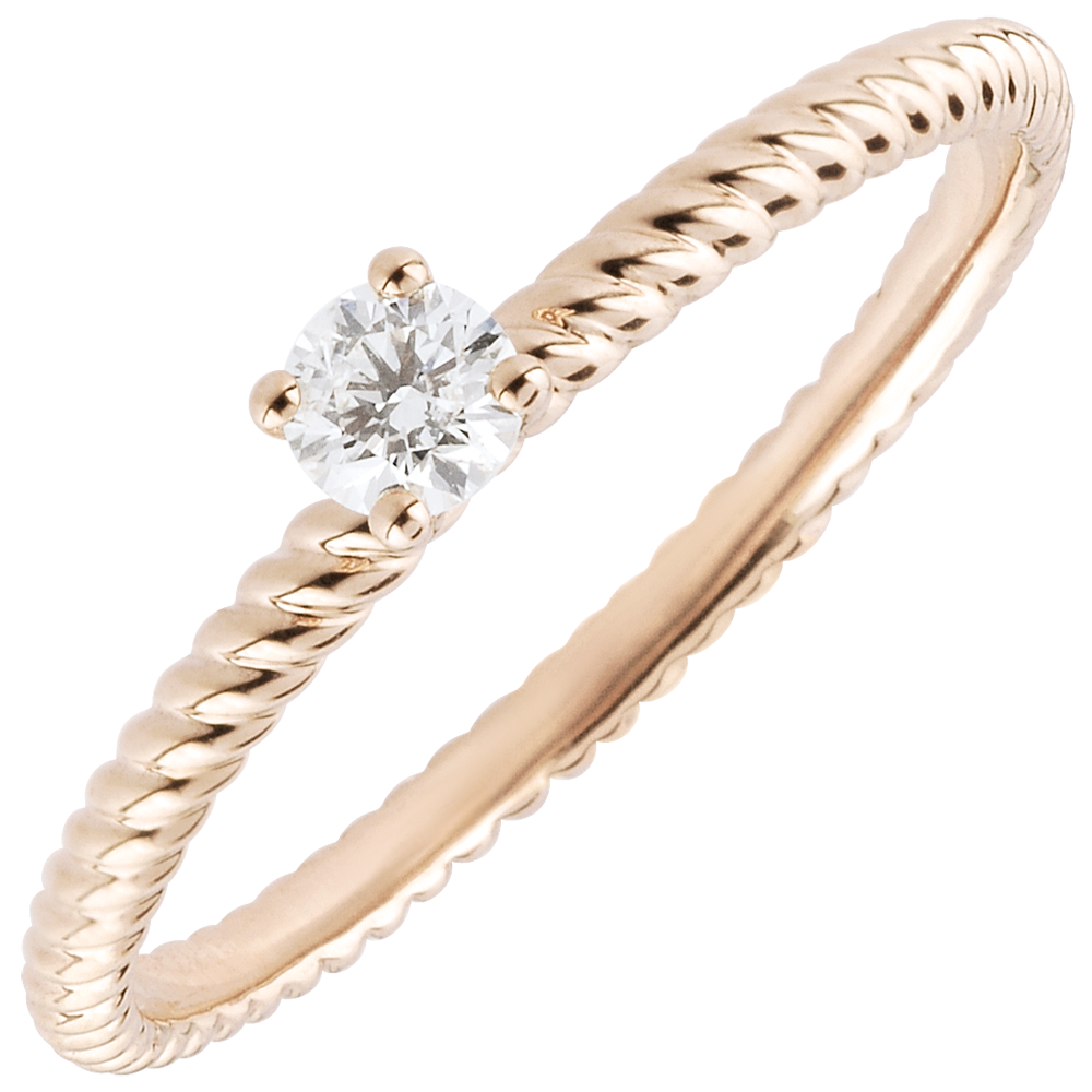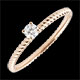 Pojedynczy diament w czterech krapach przymocowany do kunsztownej złotej liny. Oryginalny i ponadczasowy pierścionek zaręczynowy.