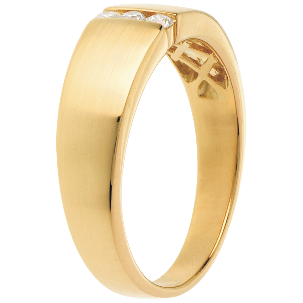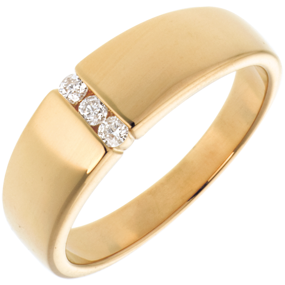 Pierścionek z trzema wciśniętymi diamentami w prostej i mocnej oprawie wyraża całą siłę uczuć.