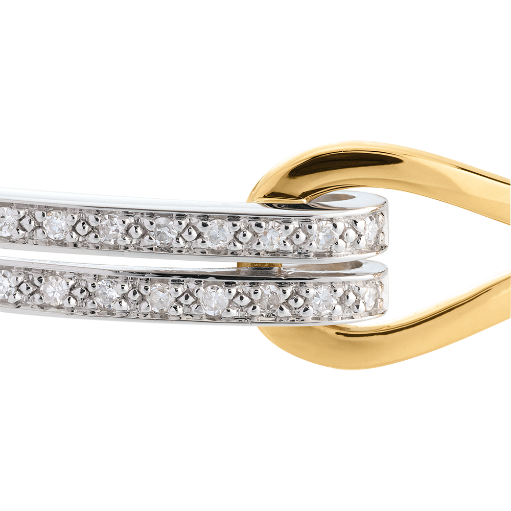 Podwójne koło Klamra wysadzane diamentami - 54 diamenty 0,32 karata - złoto białe i złoto żółte 18-karatowe