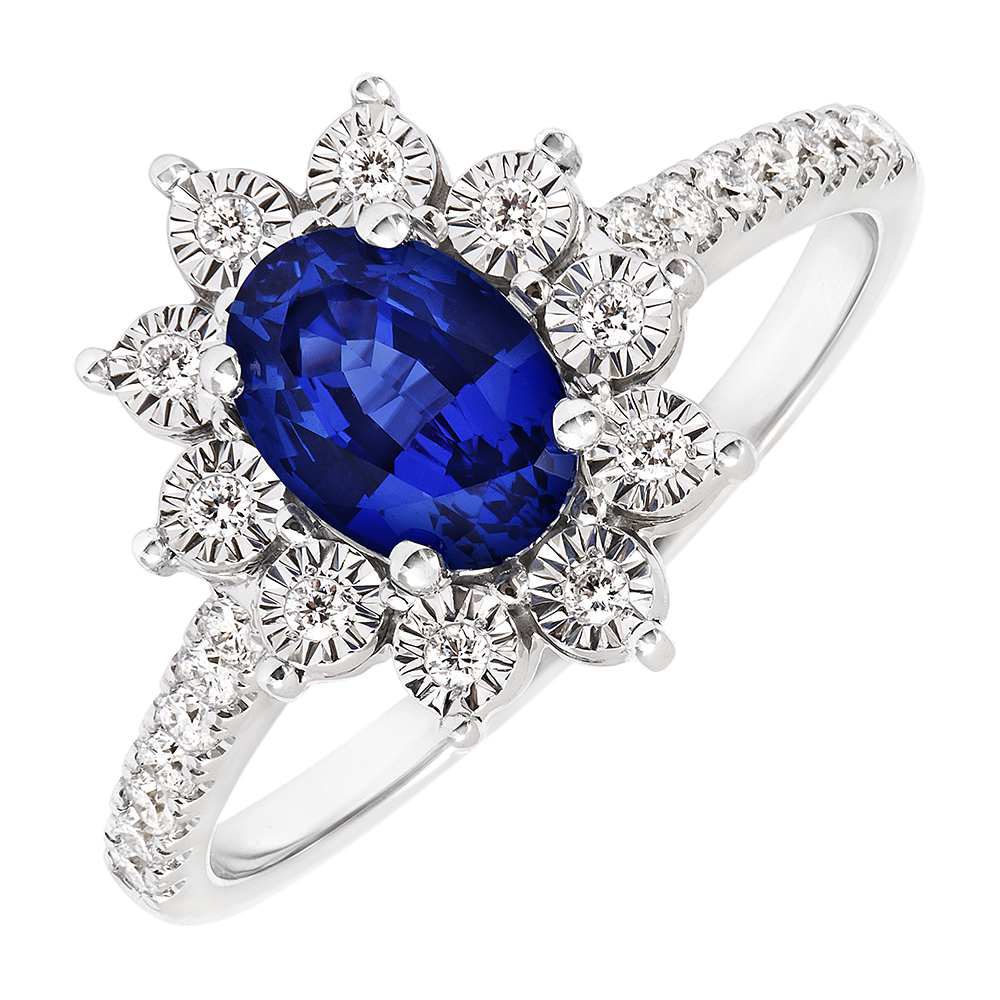 Wieczny Pierścionek Edelweiss - Daisy Chic - Białe Złoto 9k - Szafir i Syntetyczny Diament