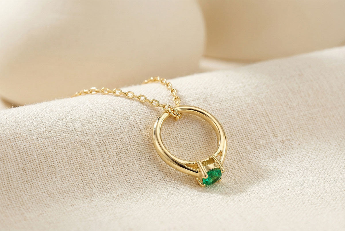 Wisiorek Cutie - złoto żółte 18 karatów i szmaragd syntetyczny