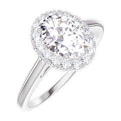 Pierścionek Białe złoto 750 - Diament Owal 0.5 karat - Korona z kamieni Diament