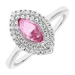 « L'ATELIER » NR 416482Pierścionek Białe złoto 375 - Różowy szafir Markiza 0.5 karat - Korona z kamieni Diament