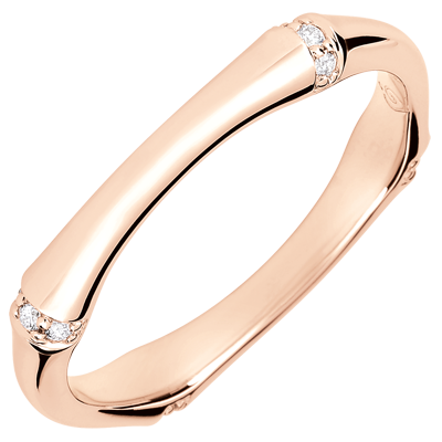 Elastyczna i trwała bambusowa tyczka przeobrażona w wieczną obrączkę z różowego złota wysadzaną diamentami.