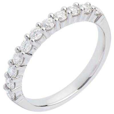 Obrączka z białego złota 18-karatowego w połowie wysadzana diamentami - krapy - 0,5 karata - 11 diamentów