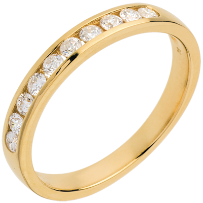 Doskonała równowaga w obrączce o wyrazistej symbolice, wysadzanej okrągłymi diamentami w oprawie kanałowej. Niezastąpiona ozdoba jako wyraz wyjątkowej więzi.