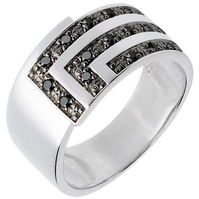 AP3213 - Trójkątny pierścionek z białego złota 18-karatowego i czarnych diamentów