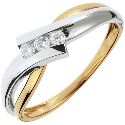 Pierścionek Drogocenne Gniazdo z potrójnym diamentem - Solfeż - złoto białe i złoto żółte 18-karatowe - 3 diamenty