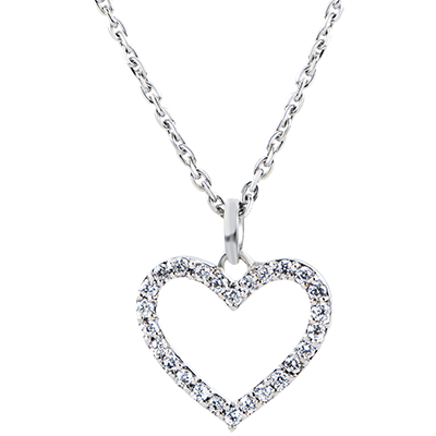Zawieszka w kształcie serca z białego złota wysadzanego diamentami. Prosty, ponadczasowy symbol o jasnej i jednoznacznej wymowie.