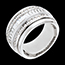 - Szeroka obrączka z białego złota 18K zapewniająca komfort noszenia