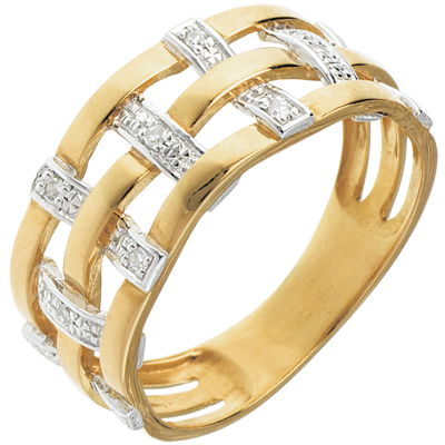 Pierścionek Szew z żółtego złota 18-karatowego wysadzany diamentami - 11 diamentów