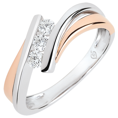 Pierścionek zaręczynowy Drogocenne Gniazdo - Trzy diamenty – duży model - różowe złoto i białe złoto 9-karatowe