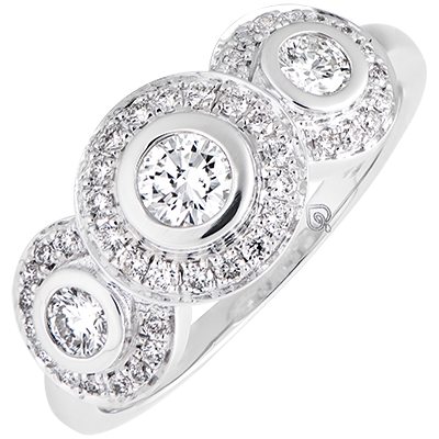 Trzy piękne aureole z diamentów w elegancki sposób przywołują epokę baroku.