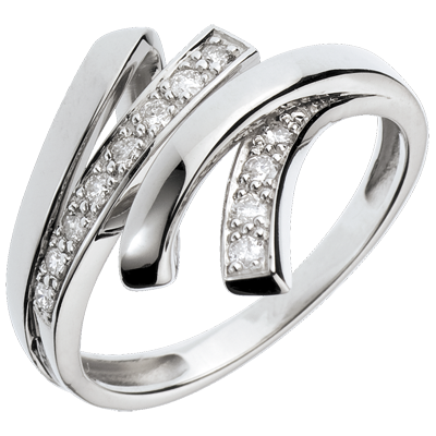 Pierścionek Noc Pustyni - wysadzany 12 diamentami - złoto białe 18-karatowe