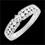 Diamenty pavé oraz centralny soliter mają co najmniej barwę H i czystość SI, co zapewnia równowagę między blaskiem a przejrzystością.