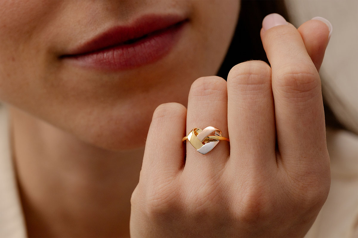 Serce, ikona biżuterii, ponownie zaprezentowana przez Edenly w wersji origami, w której 3 złote elementy przeplatają się z oryginalnością i elegancją. Delikatny i kobiecy pierścionek.
