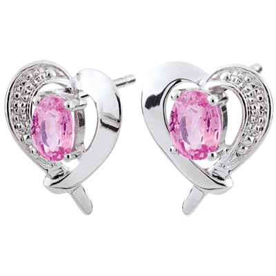 Dwa serca z białego złota z różowym szafirem wyrażające miłość, czułość i łagodność.