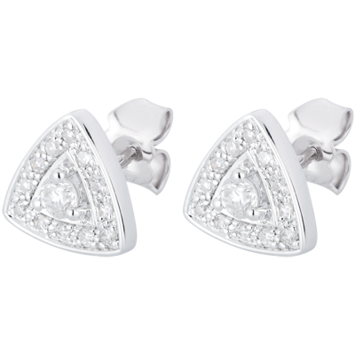Bardzo eleganckie trójkątne kolczyki ze złota i diamentów ozdabiające kobietę jak gwiazdę kinową.