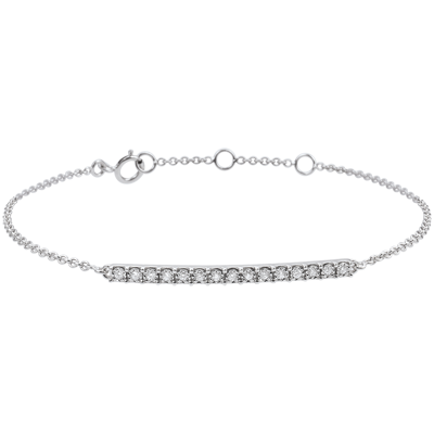 Piętnaście diamentów otoczonych rzeźbionym złotem nadaje bransoletce z łańcuszka z białego złota maksymalny blask.Bransoletka o regulowanej długości: 18 cm, 17 cm, 16 cm.Wzór o długości 30 mm i wysokości 2 mm.