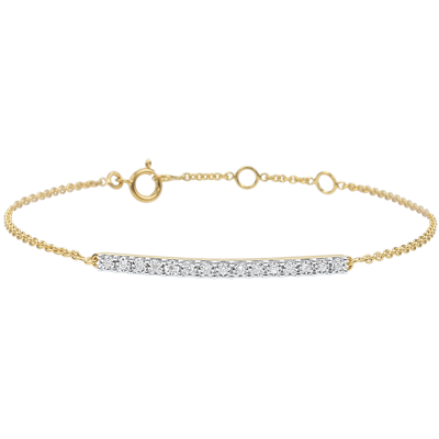 Piętnaście diamentów otoczonych rzeźbionym złotem nadaje bransoletce z łańcuszka z żółtego złota maksymalny blask.Bransoletka o regulowanej długości: 18 cm, 17 cm, 16 cm.Wysokość wzoru 2 mm, Szerokość wzoru: 30 mm