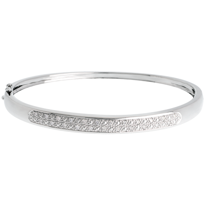 Opalizujący blask diamentów w starannej i wyrafinowanej oprawie w delikatnej bransoletce w kształcie koła.