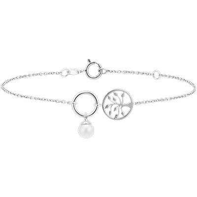 Bransoletka Obfitość - Drzewko życia - 9 karatowe białe złoto i perła