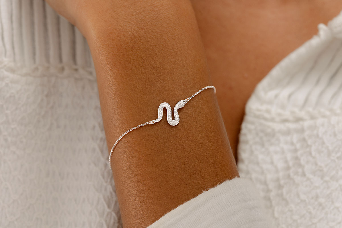 Bransoletka Spacer w Wyobraźni - Olśniewający wąż - złoto białe 9-karatowe i diamenty