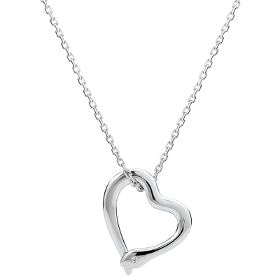 Zdobiony wąż z białego złota zwija się wokół cienkiego, kobiecego łańcuszka w kształt serca.
