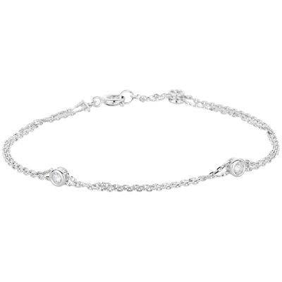 Kunsztowna konstelacja powstaje, gdy diamenty łączą się za pośrednictwem podwójnego złotego łańcuszka.