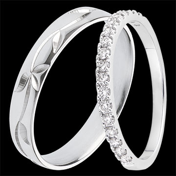 Duo obrączek Jardin Enchanté & Bettina – białe złoto i diamenty – 18 karatów