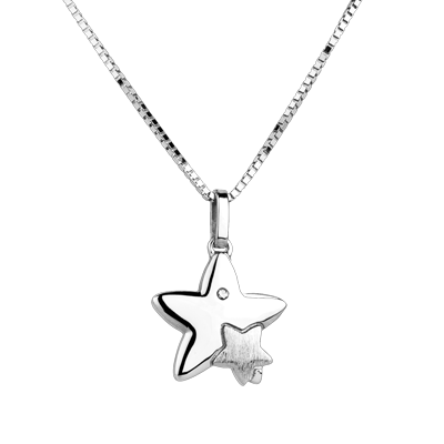 Duża gwiazda niesie małą gwiazdę. Diament ozdabia jedno z jej ramion z białego złota. Duży model.