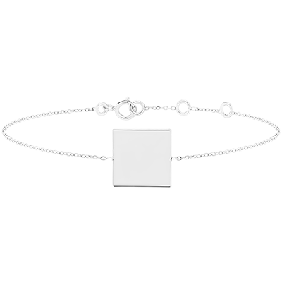Bransoletka z kwadratowym medalikiem do wygrawerowania - Białe złoto 750