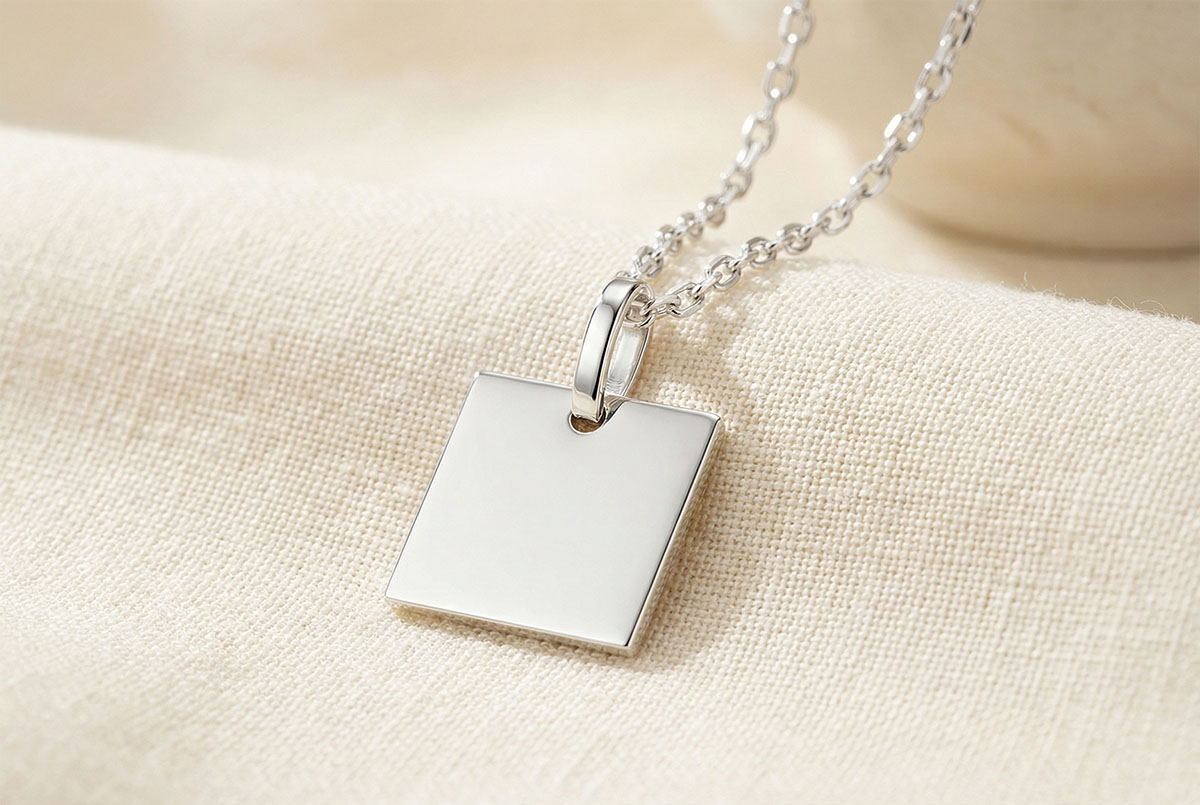 Kwadratowy medalik do wygrawerowania - Białe złoto 375