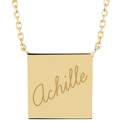 LOVELY YOURS NR 3Naszyjnik z grawerowanym medalikiem w kształcie kwadratu - Żółte złoto 375 ID : 4828
