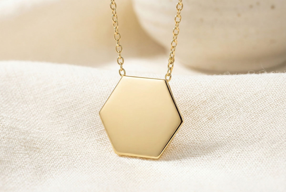 Naszyjnik z sześciokątnym medalikiem do wygrawerowania - Żółte złoto 375