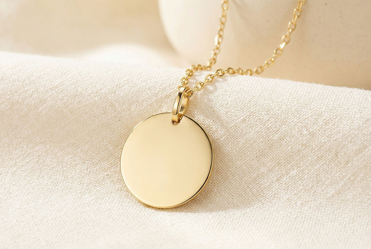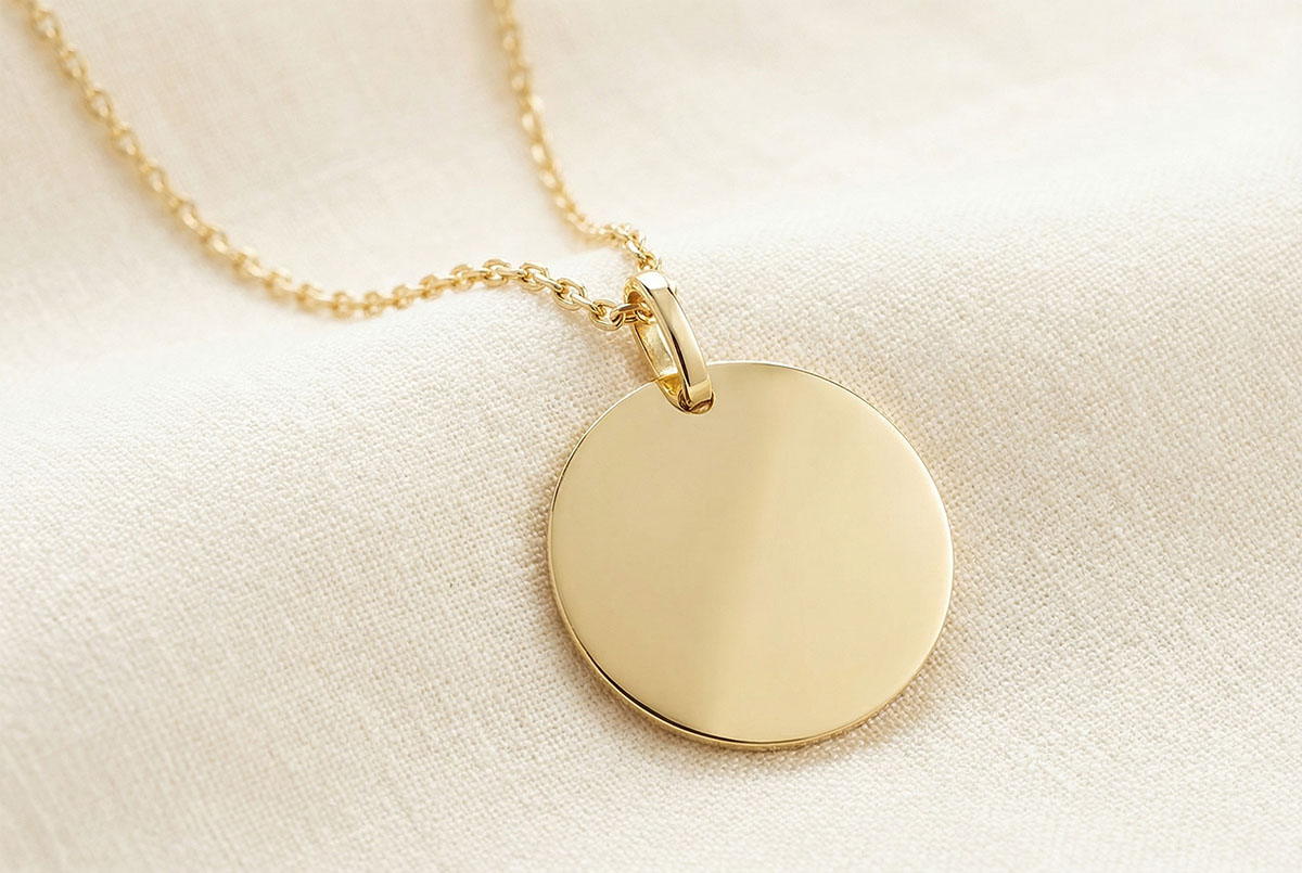Złoty medalik, który możesz spersonalizować według własnego uznania, wybierając jeden z dostępnych grawerów Edenly.