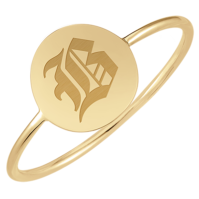 Złoty sygnet, który możesz spersonalizować według własnego uznania, wybierając jeden z dostępnych grawerów Edenly.