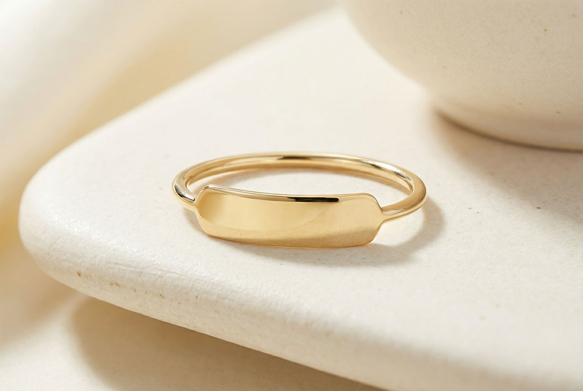 Prostokątny sygnet do wygrawerowania - Żółte złoto 375