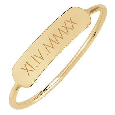 LOVELY YOURS NR 24Pierścionek z prostokątnym medalionem z grawerem - Żółte złoto 375 ID : 4853