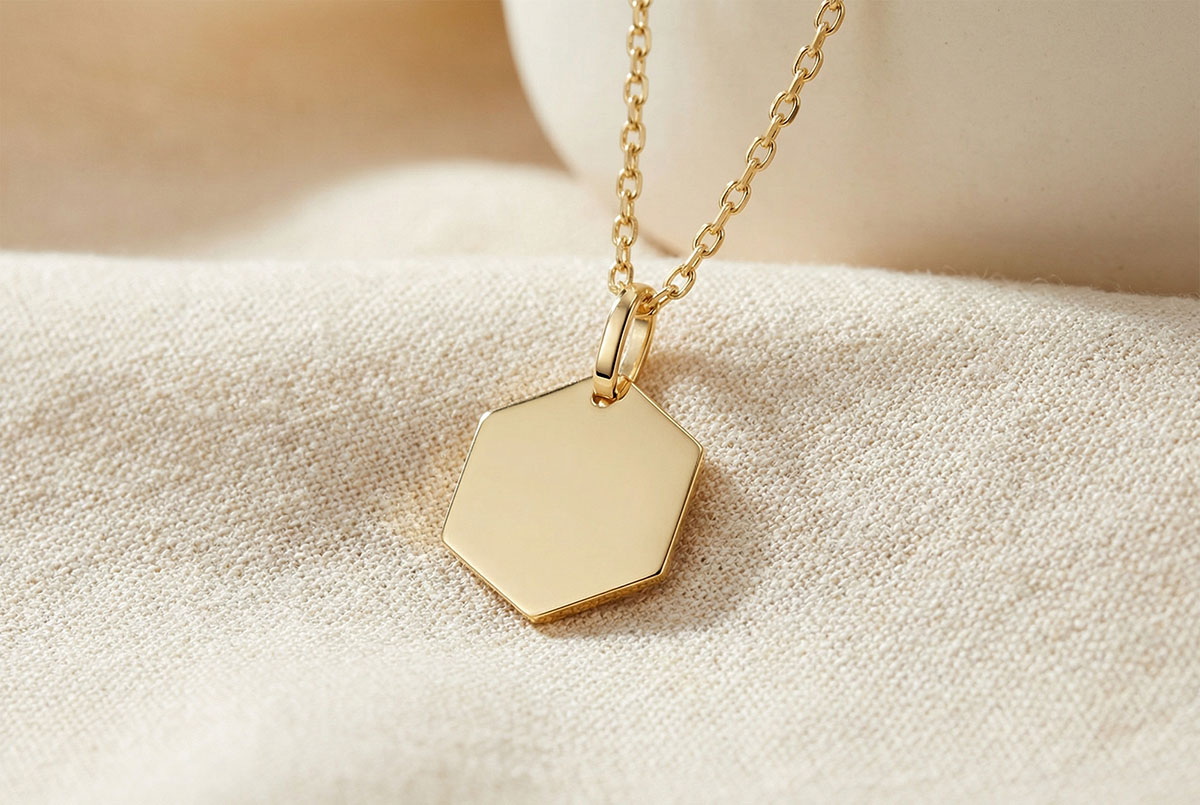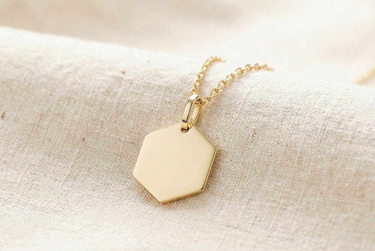 Sześciokątny medalik do wygrawerowania - Żółte złoto 375
