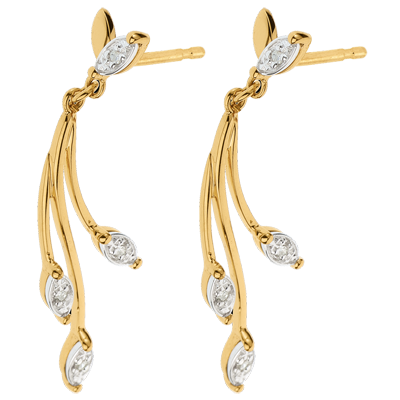 Kolczyki Bujna Roślinność - złoto białe i żółte 18-karatowe oraz diamenty