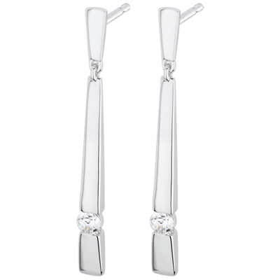 Kolczyki z białego złota z diamentem, o eleganckiej i czystej formie.